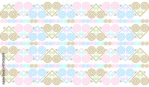 Ethnic fabric pattern, snail pattern, pastel color tone, used for printing to assemble clothes and other things as needed.