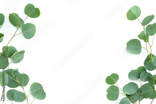 Eucalyptus leaves framed against a white background, in a minimalist style with soft tones.