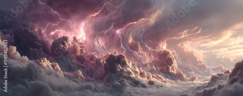 Euphoria clouds bursting with neon pink lightning and glowing sun halos