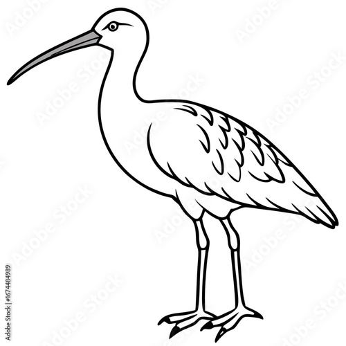 Eurasian Curlew Bird Line Art Vector Illustration on White Background