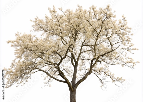 European Ash tree with flowers isolated on white background