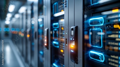 Evaluation of smart delivery locker system with tech analysis, logistics machines, copy space, covering all objects, deep depth of field.