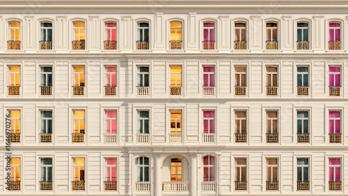 Evening glow on urban building facade. Neural network AI generated
