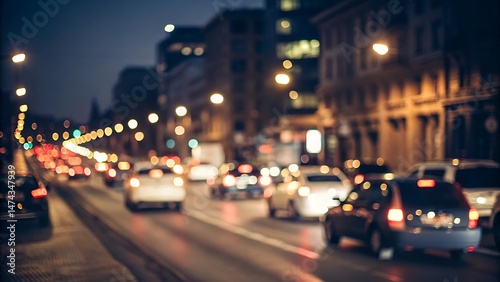 Evening traffic jam scene city streets blurred background urban environment dynamic viewpoint