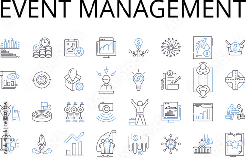 Event Management line icons collection. Project Planning, Business Strategy, Brand Development, Marketing Coordination, Campaign Strategy, Sales Planning, Talent Management vector and linear