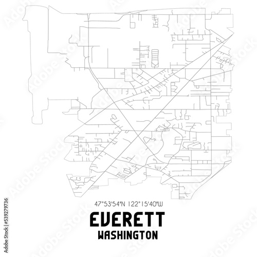 Everett Washington. US street map with black and white lines.