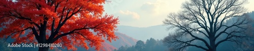 Evergreen and deciduous trees contrast with bare branches in winter, deciduous, tree