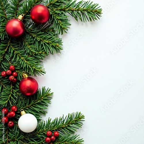Evergreen branches adorned with red and white ornaments and berries, winter, branch, Christmas decorations