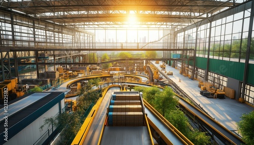Evergreen Industry Automated Conveyor Belts in Green Factory