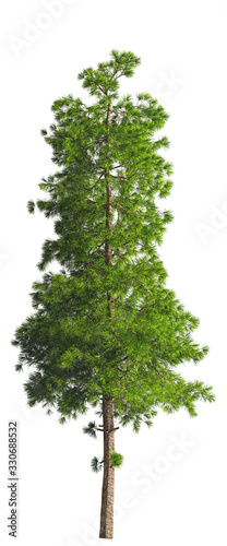 Evergreen tall coniferous pine tree on a white insulating background on high resolution. 3D stock illustration.
