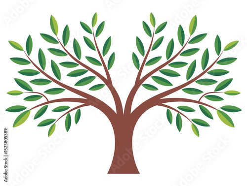 Evergreen tree emblem with lush green canopy symbolizing life, growth, nature, and environmental harmony in detailed vector art