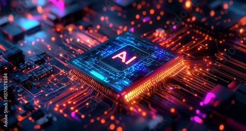 Examining Advanced Ai Microchip with Futuristic Glowing Technology Details