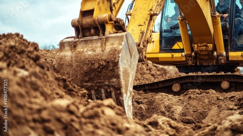 Excavation operator maneuvering a backhoe to dig trenches. Featuring strength and control