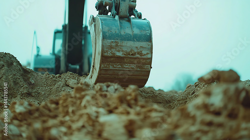 Excavator Bucket Digging into Soil at Construction Site