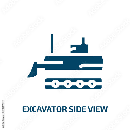 excavator side view vector icon. excavator side view, loader, equipment filled icons from flat construction concept. Isolated black glyph icon, vector illustration symbol element for web design and