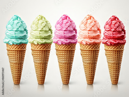 Excellent Ice cream collectionset of different colorful scoops in various flavorsaffle conesummer