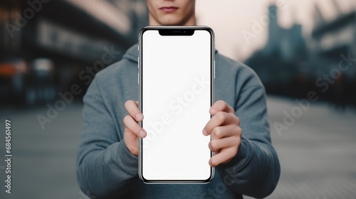 Excited child with smartphone photo realistic illustration - Generative AI.