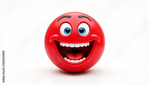 Excited red emoji expressing enthusiasm on white background, digital art