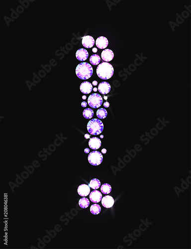Exclamation mark icon made with precious gems or rhinestones on black background