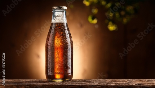 exclusive brown fizzy beverage in elegant glass bottle with sophisticated photographic style
