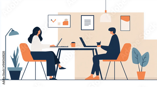 Executive Coaching Session in Modern Office, Flat Design Illustration
