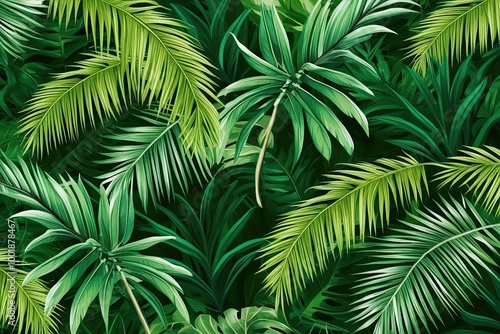 Exotic Palm Leaves Botanical Design with Tropical Rainforest Foliage and Lush Greenery