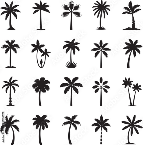 Exotic Palm Tree Vector Collection Summer Beach Silhouette Icons for Branding, Posters, and Logos