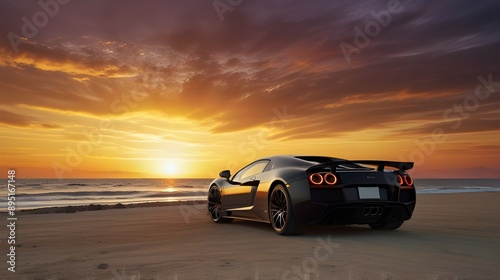 Exotic Supercar at Sunset Luxury Beach Drive, Travel Destination, Lifestyle Advertisement