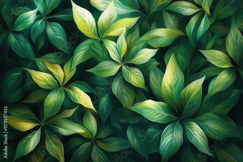 exotic tropical palm leaves pattern in vibrant green shades with artistic botanical details and modern design elements
