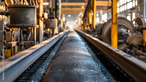 Expansive Industrial Factory Interior with Intricate Network of Railway Tracks and Machinery