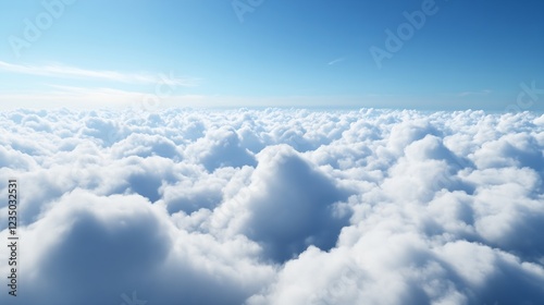 Expansive White Fluffy Cloudscape against a Deep Blue Sky Background : Generative AI