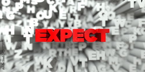 EXPECT - Red text on typography background - 3D rendered royalty free stock image. This image can be used for an online website banner ad or a print postcard.