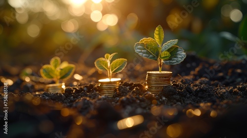 Experience a sustainable oasis where coins blossom on trees, symbolizing prosperity and eco-conscious business growth