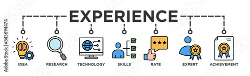 Experience banner web icon vector illustration concept with icon of idea, research, technology, skills, rate, expert and achievement