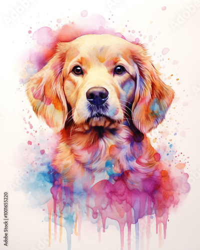 Experience the beauty of a multicolor baby golden retriever watercolor through Vibrant Wall Art