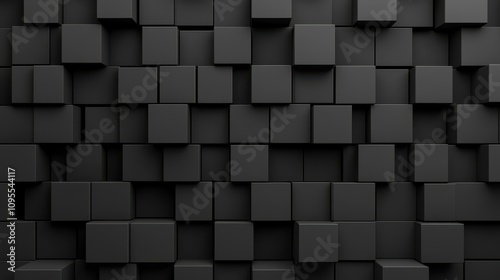 Experience the elegance of 3D abstract black cubes, perfect for modern backgrounds and striking textures.
