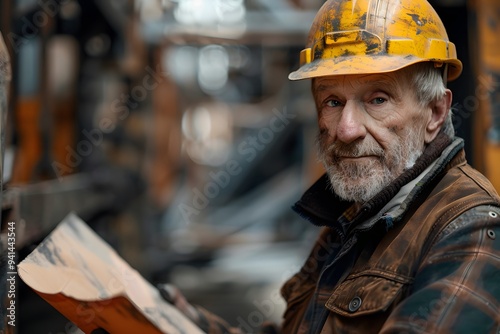 Experienced Worker in a Hard Hat Examining Plans on a Construction Site