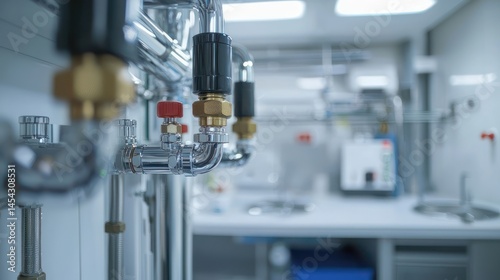 Expert plumber programming a machine in a laboratory, realistic, no logos, stock photo style