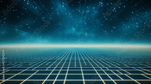 Explore a vast digital universe with this stunning futuristic grid and starry night sky, perfect for sci-fi enthusiasts.