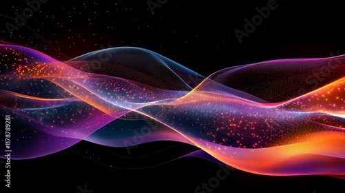 Explore the mesmerizing beauty of glowing digital waves in silhouette. This abstract design emphasizes data connectivity and modern technology.