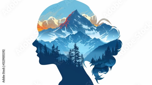 Explorer and Mountains: A person’s silhouette filled with a mountain range, embodying their adventurous spirit and deep connection with the rugged beauty of nature.