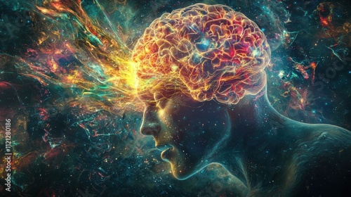 Exploring consciousness and creativity abstract brain imagery in cosmic environment digital art