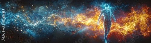 Exploring cosmic energies human connection to the universe digital art nebula environment surreal viewpoint