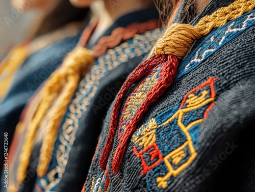 Exploring intricate embroidery on traditional clothing in cultural settings closeup view of bold colors and patterns