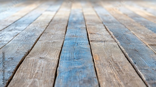 Exploring the Charm of a Rustic Wooden Floor with a Blue and White Background Featuring Aged Textures and Weathered Wood Planks for Artistic Inspiration