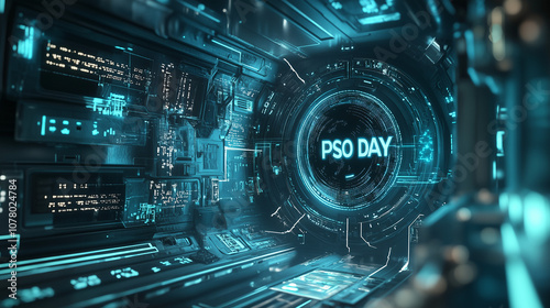 Exploring the futuristic digital landscape on PSO Day featuring vibrant blue circuitry and holographic designs.