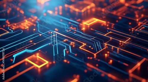 Exploring the glowing circuit patterns of a digital cyberspace virtual environment graphic design futuristic perspective technology concept