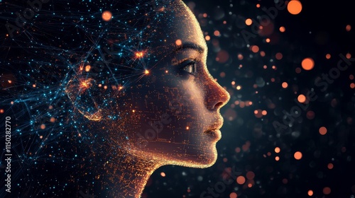 Exploring the Intersection of Technology and Human Emotion Through a Captivating Digital Portrait of a Woman With a Cosmic Background