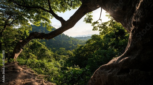 Exploring the lush green wilderness a serene view of nature's beauty in a tropical forest