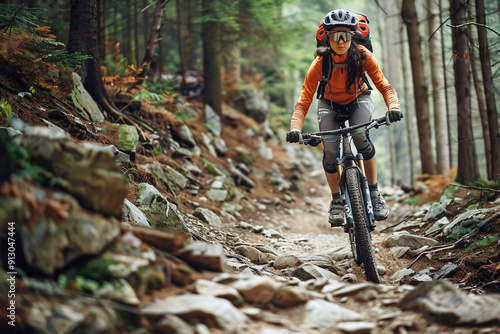 Exploring the Trails: Woman Cyclist in Mountain Biking Adventure